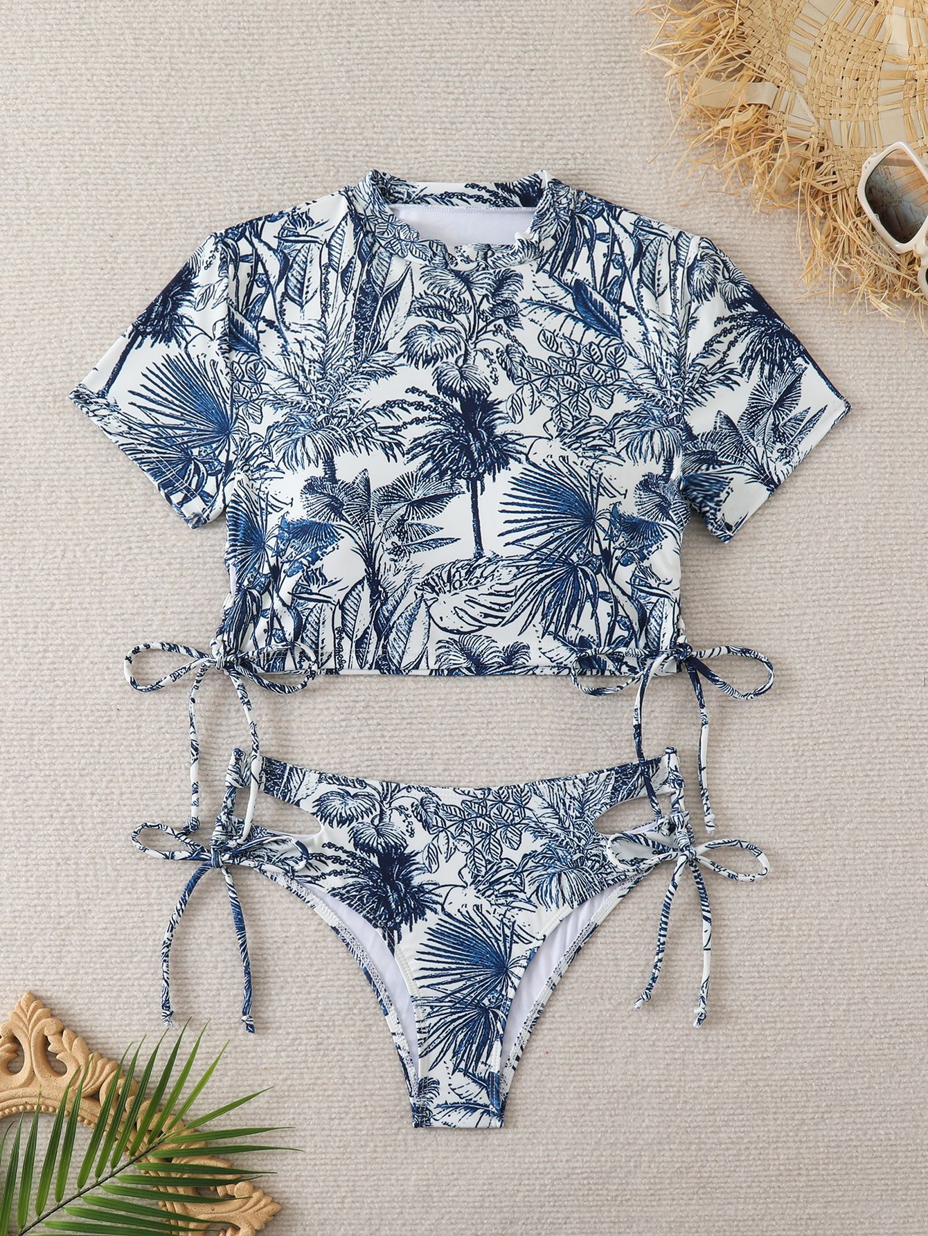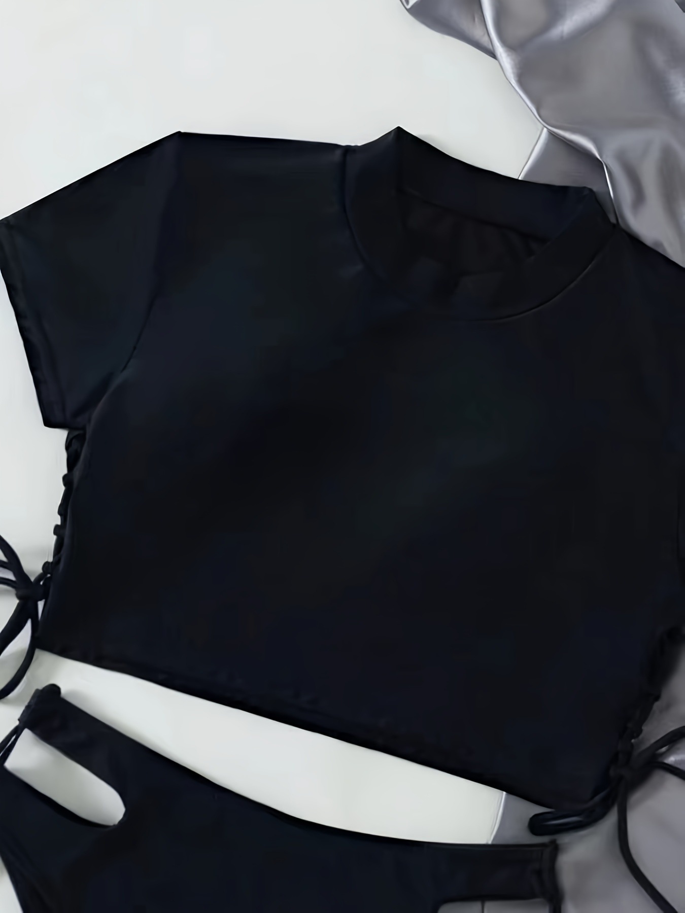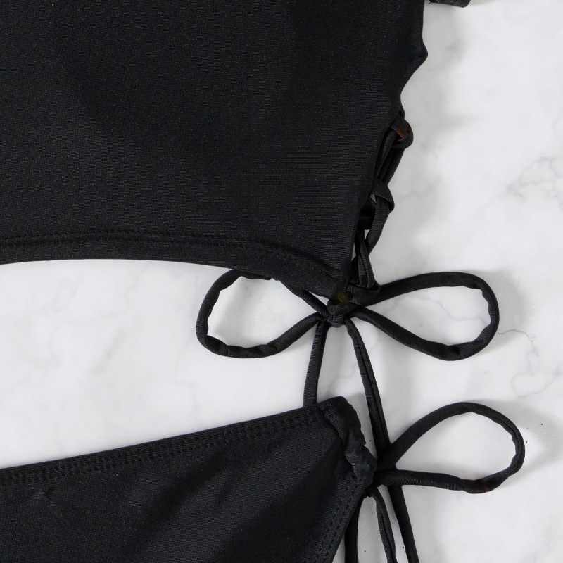 This bikini features a flattering cut-out design on the sides and back, enhancing your silhouette and adding a touch of elegance to your beach look.