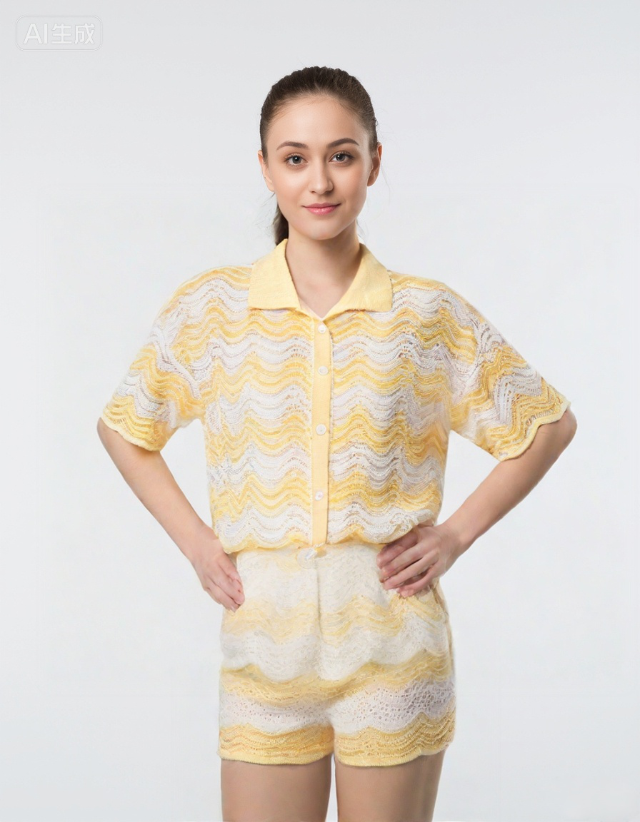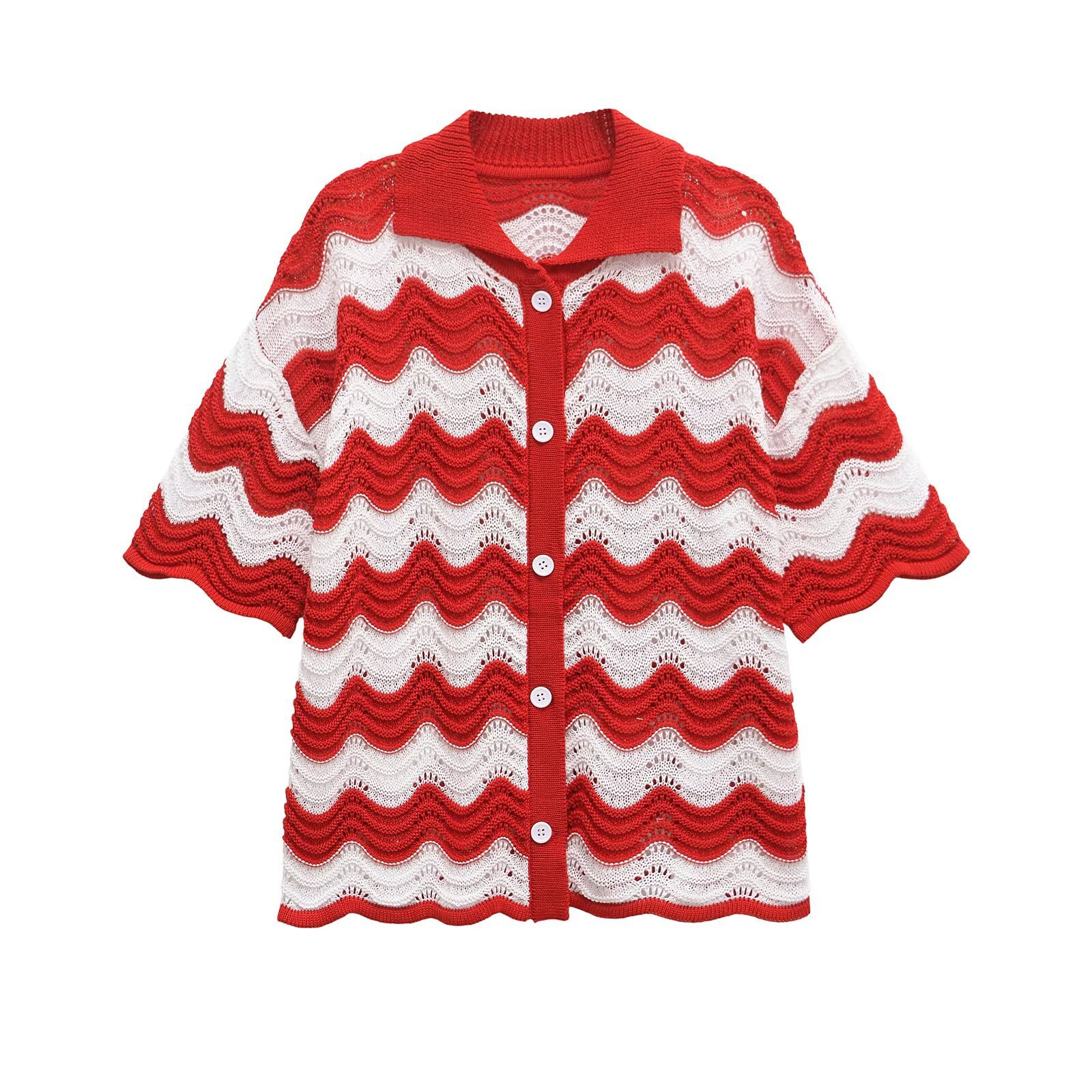 This Women's Knitted Wave Pattern Set is a perfect blend of style and comfort. The set includes a short-sleeved top and a matching skirt, both featuring a charming wave pattern. Made from high-quality yarn, it offers a soft and breathable fabric that is perfect for any season. The intricate knitting details and unique button design add a touch of sophistication to this versatile set.