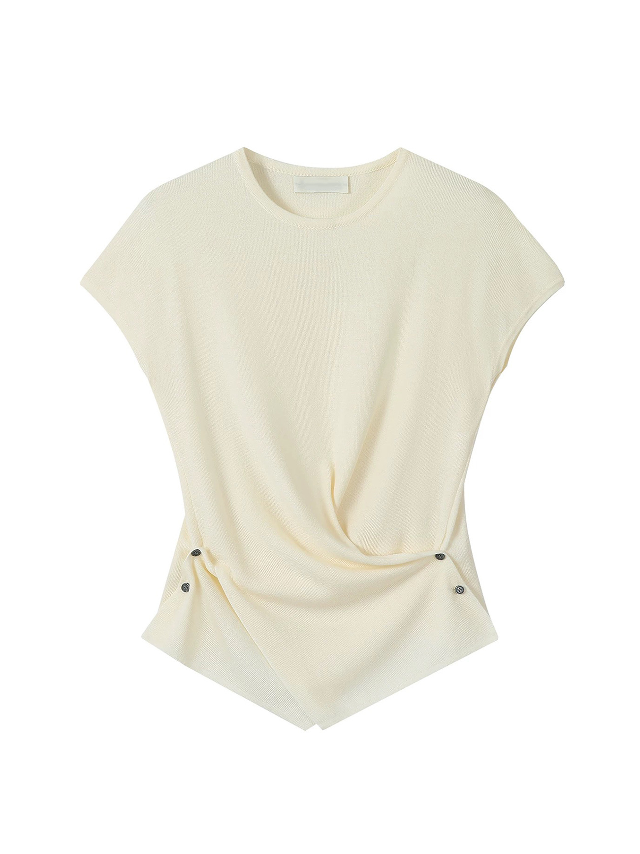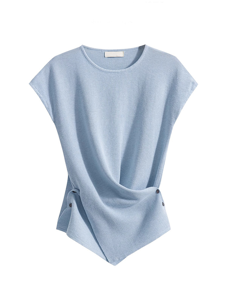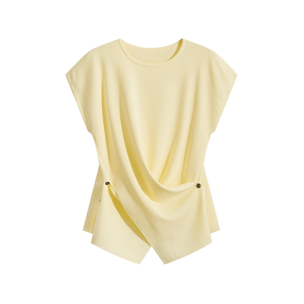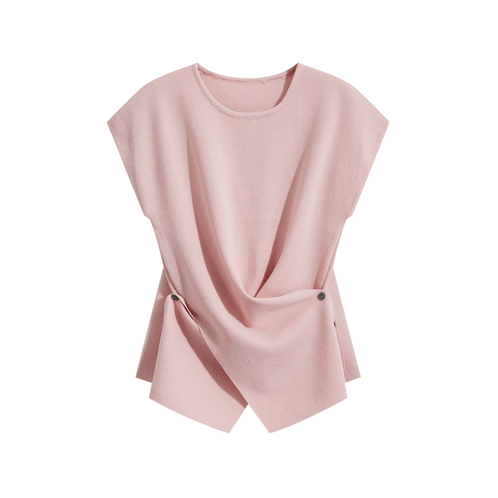The Women's Twist-Front Knitted Top from T&B Fashion Group is a chic and contemporary piece that combines comfort with a unique design. Featuring a twist-front detail with buttons and short sleeves, this top is perfect for adding a touch of elegance to your everyday wardrobe. Made from soft, breathable fabric, it ensures all-day comfort and style.